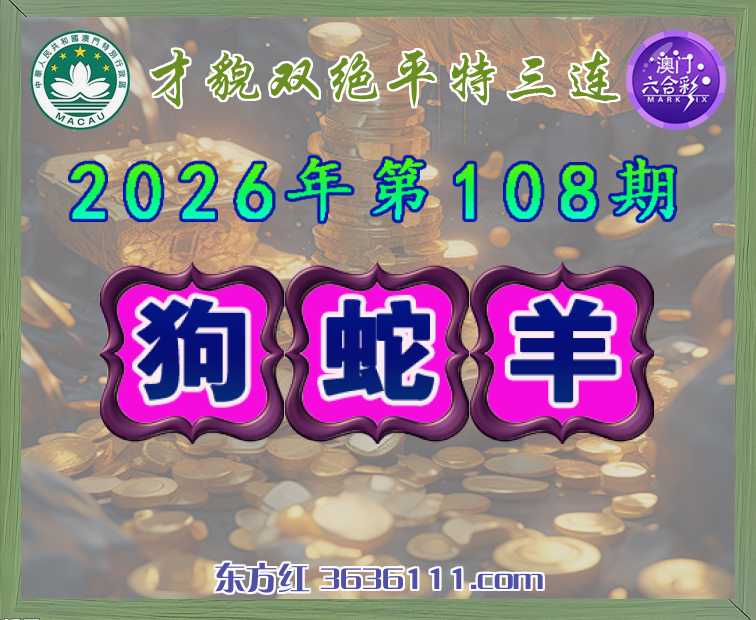 108期:『才貌双绝』 🧏♀️平特三连🧏♀️【狗蛇羊】开:狗45,蛇26,羊48准