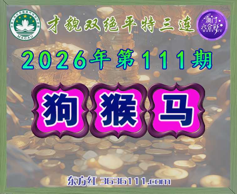 111期:『才貌双绝』 🧏♀️平特三连🧏♀️【狗猴马】开:狗21,猴23,马01准