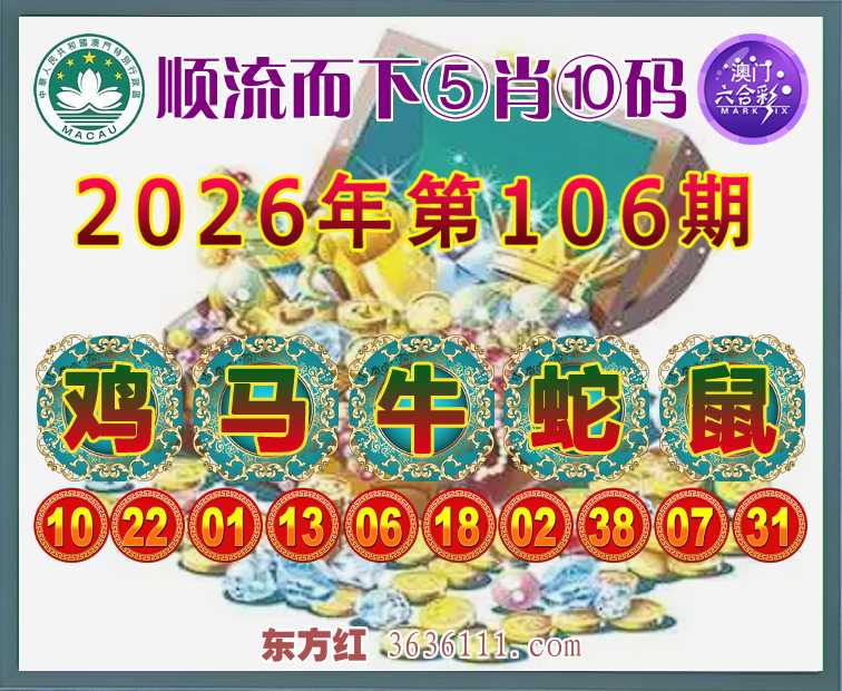 106期:〖顺流而下〗 🤡⑤肖⑩码🤡【鸡马牛蛇鼠】开:鸡22准