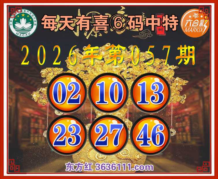 057期:〖每天有喜〗 🍕⑥码中特🍕【02.10.13.23.27.46】开:23