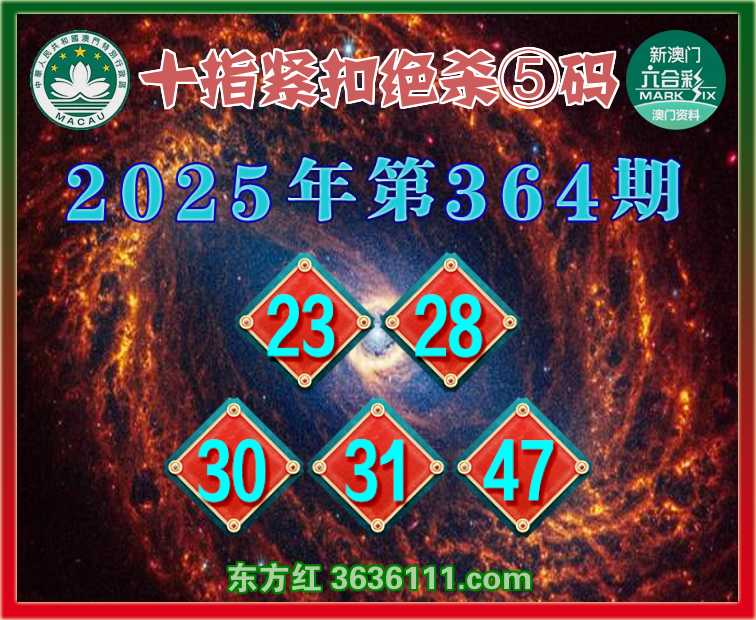 364期:【十指紧扣】 🏵️绝杀⑤码🏵️【23.28.30.31.47】开:马12准