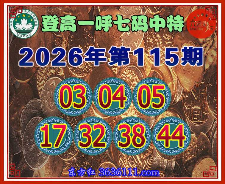 115期: 📙《登高一呼》 📙七码中特📙【03.04.05.17.32.38.44】开:04准
